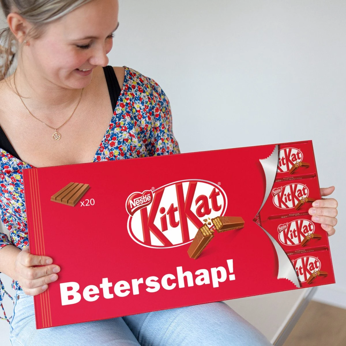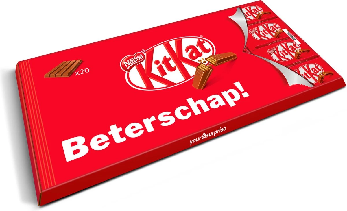 Wil jij iemand beterschap wensen? Of wil je iemand een hart onder de riem steken in een zware periode? Dan is deze Giant KitKat reep het perfecte cadeau! De ontvanger zal weten hoe MEGA blij je met hem of haar bent! De supergrote KitKat reep kun je natuurlijk ook voor jezelf bestellen, want hij is ook perfect om te delen met je familie, vrienden of wie jij maar wilt.