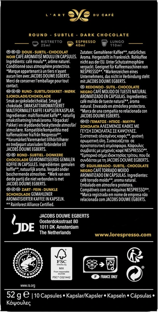 Subtiele maar uitgesproken tonen van donkere chocolade versterken de rijke branding in het hart van deze gearomatiseerde espressoblend. Vol en rond met een vleugje lichte zoetheid en een intense smaak explosie van uitzonderlijke chocolade in de afdronk.