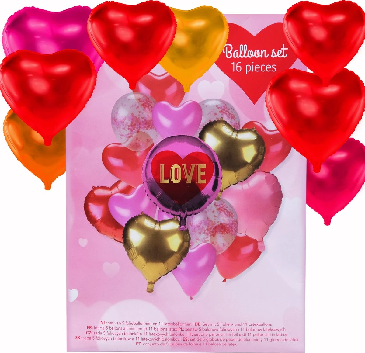 * LOVE Balloon set van 16 stuks Harten ballonnen ( 5 folieballonen en 11 latexballonnen)