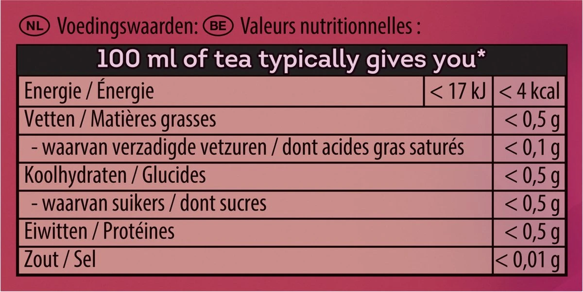 Lipton Raspberry Pomegranate Groene Thee is een groene thee met de smaak van zoete frambozen en heerlijke granaatappelpitjes. De combinatie van groene thee en de smaak van framboos en granaatappel zorgt voor een smaakexplosie in je mond. Voor een uniek theemoment. Perfect om de dag mee te beginnen, maar ook lekker om te drinken na je work-out of tijdens een momentje voor jezelf. De veelzijdige Lipton-smaken zijn gecombineerd in een piramidevormig zakje dat speciaal is ontwikkeld om de ingrediënten meer ruimte te geven om te trekken. Op die manier komen de theeblaadjes, echte stukjes fruit en kruiden het best tot hun recht. Laat de thee daarom lekker lang trekken voor een intense smaak en pak even jouw theemoment. Bij Lipton geloven we dat kleine veranderingen een groot verschil kunnen maken voor de planeet. Na de overgang van Lipton Ice Tea naar volledig gerecycled plastic in 2020 worden de theezakjes van Lipton in 2021 volledig biologisch afbreekbaar. Dit betekent dat de theezakjes bij het gft-afval kunnen worden weggegooid. In de loop van het jaar zal Lipton de doosjes met plastic verpakking vervangen door kartonnen doosjes met een beschermende coating. Deze kartonnen verpakkingen kunnen worden gerecycled bij het oud papier. Hiermee zal Lipton alleen in Nederland al 88 ton plastic per jaar besparen. Elk kopje Lipton-thee wordt duurzaam gekweekt op Rainforest Alliance gecertificeerde theeplantages met behulp van natuurlijke regen, wind en zonneschijn om je onze kenmerkende smaak en het rijke aroma te geven. Zo kan elk kopje van onze thee niet alleen je dag helpen opfleuren, maar ook de toekomst van al onze theeboeren en hun families, en natuurlijk ook onze planeet.