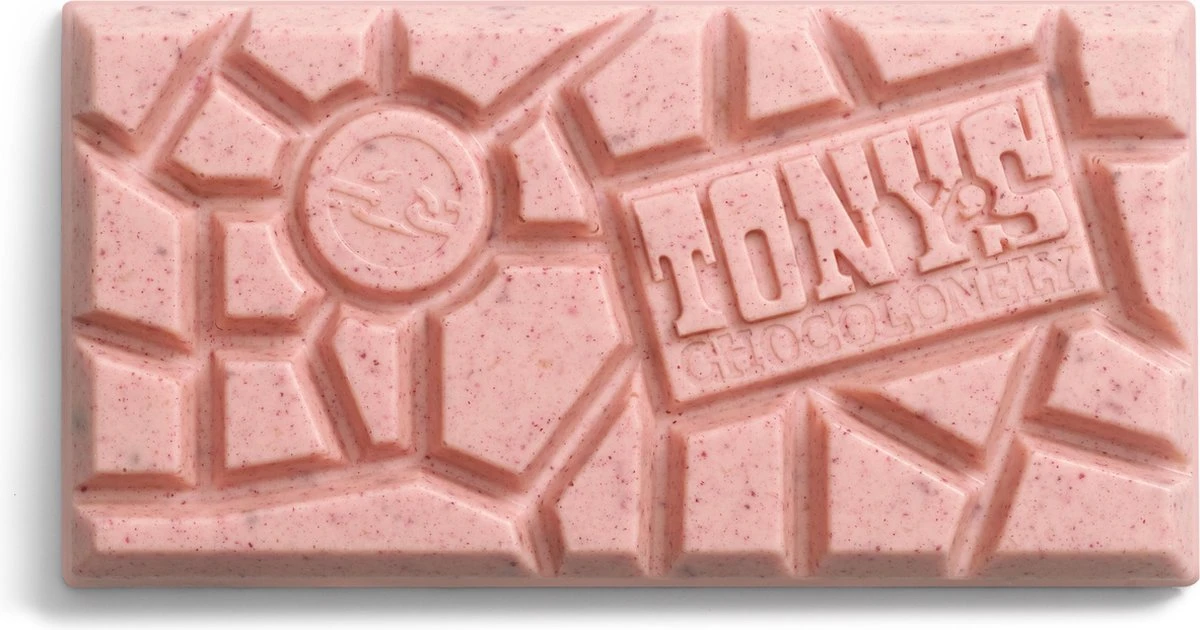Witte chocolade met fruitige stukjes framboos én ’n royale schep knettersuiker. Terug van weggeweest en here to stay! Zijn ze nou helemaal knetter geworden bij Tony’s?
